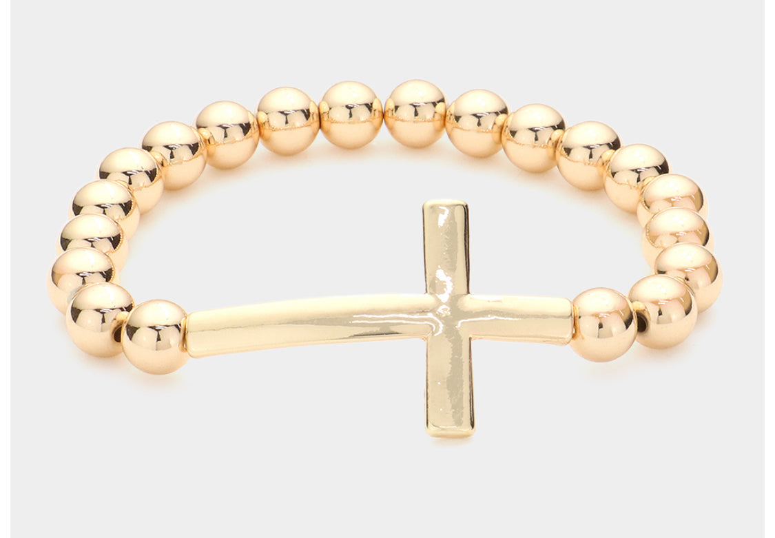 Cross pendant stretch bracelet