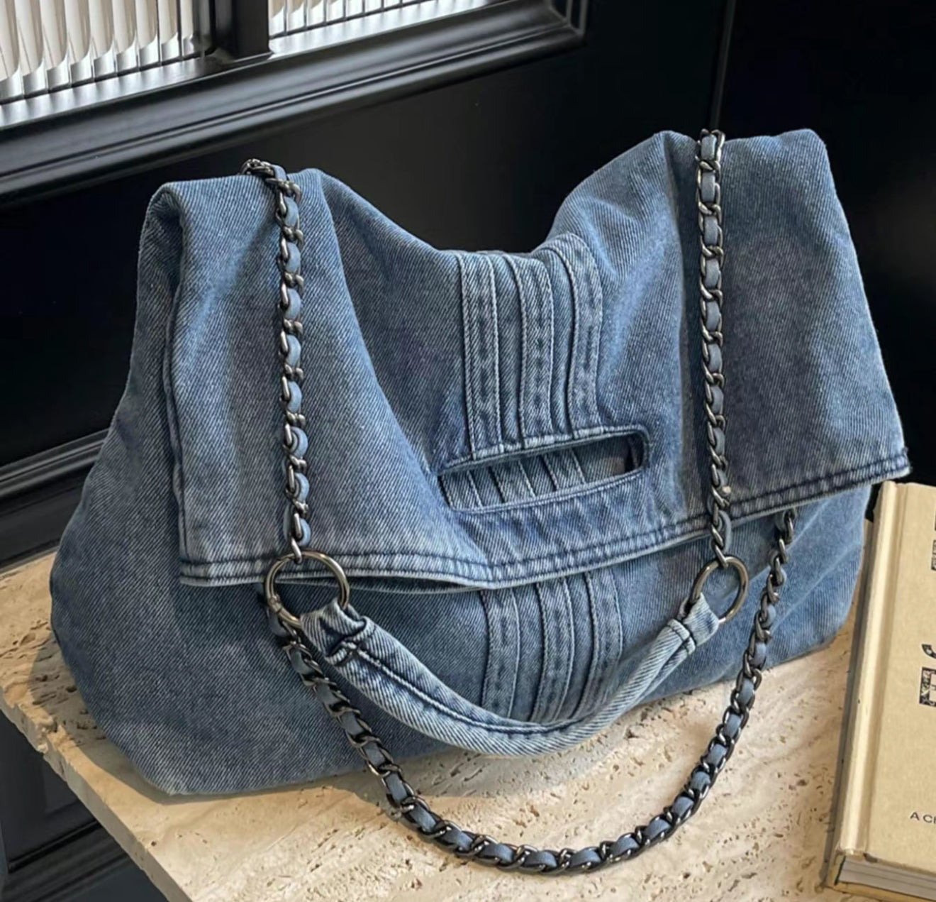 Denim Fold over Bag